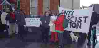 Based on a press release from the Dublin 11 campaign, around 30 activists took part in the picket despite the dreadful weather that evening. There was a very large police presence which is unfortunately not shown in the photos.