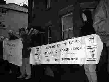On 28th March 2000 a group of eleven anti-racists occupied the Taoiseach's constituency office, in protest at proposed draconian measures against asylum seekers. The government was planning to introduce prison ships (so-called 'flotels'), forcible fingerprinting and the introduction of police from abroad to catch people fleeing injustice in their own countries.