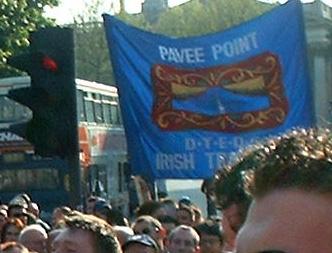 A lot of effort had gone into making placards and banners for the demonstration and it was nice to see so much colour and variation as opposed to the normal mass produced identical placards typical of Dublin demonstrations. In terms of banners I was very please to see one from the Irish Travellers organisation Pavee Point there. Travellers have traditionally taken the brunt of Gardai assaults something racist settled society find not only acceptable but too often desirable. Some Travellers were saying that as recently as Monday the Gardai had carried out a violent eviction with several injuries and arrests as a result. With the new racist act that turns a 24 hour tresspass into a criminal offence it seems in the short term at least Travellers are going to be faced with more and more violent evictions.