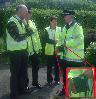 Meanwhile the Aer Rianta duty manager who was observing the protest with another Aer Rianta staff member and a member of the airport police equipped with a digital camera was over heard issuing instructions regarding the Hercules by mobile phone. Inside the airport grounds where the Airport Police were also harassing protesters it appears they were simply making up byelaws to justify themselves. One protester, Tim Hourigan , reported that "Mr. Aer Rianta again told us we were violating an airport bye-law. When I asked him what byelaw he was referring to he couldn't name it, so the airport policeman with him told us it was 425. I walked over to the poster of byelaws and there is no such byelaw. There is a bye-law 4.2-5 referring to motor vehicles at the airport!"
